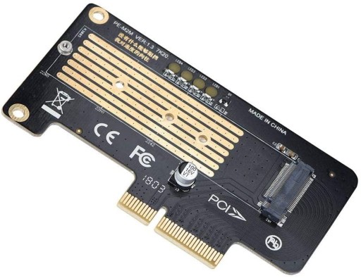Adapter PCI-E umożliwia opdłaczenie dysku M.2 NVMe NGFF Key M do płyty głównej komputera. Sprawdzi się idealnie w momencie kiedy oba sloty M.2 na płycie są zajęte lub też kiedy płyta obsługuje dyski M.2 NVMe ale nie posiada slotów na płycie głównej.