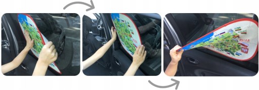Osłonka wykonana jest z dwóch warstw materiału: siatki oraz przyciemnianej folii elektrostatycznej, która przyczepia się sama do szyby. Można ją wielokrotnie przyklejać i odklejać z szyby. Po odklejeniu nie pozostawia żadnych śladów.