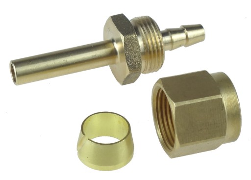 Komplet - Nakrętka,Docisk,Baryłka do przewodu Faro z tworzywa Fi 6 zastępujący dotychczas stosowaną rurkę miedziana Fi 6 Cena za cały komplet tak jak na zdjęciuPo założeniu i skręceniu zestawu ze zdjęcia z przewodem elastycznym mamy wyjścia na standardowe dociski z reduktora elektrozaworu i wielozaworu