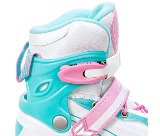 Do zmiany rozmiaru niepotrzebne są żadne narzędzia. Wystarczy nacisnąć przycisk i rozsunąć przednią skorupę buta. Dzięki temu rolki posłużą na wiele sezonów i zawsze będą dobrze dopasowane do rozmiaru stopy.