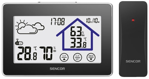 Wysokiej jakości cyfrowa stacja pogodowa z wyświetlaczem LCD. Oferuje: termometr elektroniczny, zegar z alarmem, historię odczytów, prognozę pogody. Nadaje się do montażu na ścianie. Zawiera estetycznie wykonany precyzyjny sensor z czujnikami wewnętrznym. Zaletą produktu jest duży i bardzo czytelny wyświetlacz LCD.