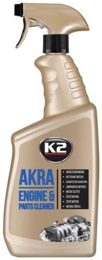 K2 AKRA – sprawdzony przez miliony klientów na całym świecie, płyn do mycia silnika i innych mocno zabrudzonych podzespołów samochodu. Jest produktem przeznaczonym do usuwania zaschniętych osadów, zacieków z płynów eksploatacyjnych, pyłów, stwardniałego brudu i lotnej rdzy. Oczyszcza silnik i inne podzespoły samochodu, a także służy do mycia narzędzi i czyszczenia urządzeń oraz powierzchni przemysłowych.