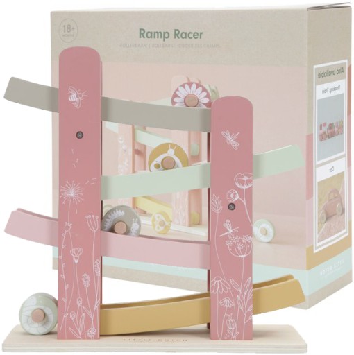 Zjeżdżalnia posiada 4 poziomy oraz 4 małe kółeczka z motywem Wild Flowers. Kółeczka puszczone z samej góry, przesuwają się na sam dół. Wykonana z wysokiej jakości drewna, malowana bezpiecznymi farbami na bazie wody. Ładnie zapakowana w karton, doskonale sprawdzi się na prezent.