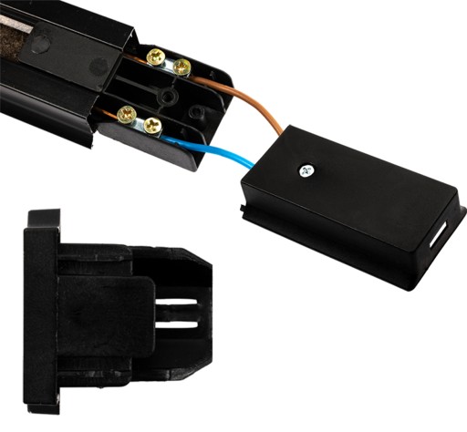 Montaż produktu jest prosty i intuicyjny. Zestaw zawiera wbudowane przyłącze zasilające, znajdujące się na końcu szyny, i posiada kostkę elektryczną. Może być wykorzystane jako zasilanie końcowe. Wykorzystując złączki, możemy budować linie oświetleniowe, podając napięcie z jednego przyłącza zasilającego.