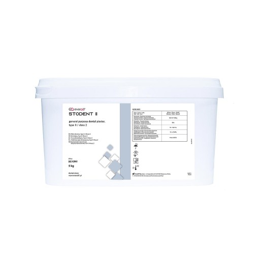 Stodent II to gips modelowy typu 2 zalecany do wypełniania puszek przy wykonywaniu protez ruchomych tworzywami akrylowymi polimeryzującymi na gorąco oraz do innych prac pomocniczych.