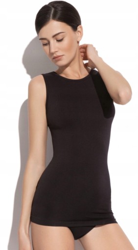 Podkreśla idealnie figurę i nie ujawnia zmarszczeń tkaniny, dzięki czemu doskonale prezentuje się na sylwetce. Koszulka bez rękawów z subtelnym dekoltem świetnie sprawdza się pod elegancką marynarką, jak też zimowym swetrem.