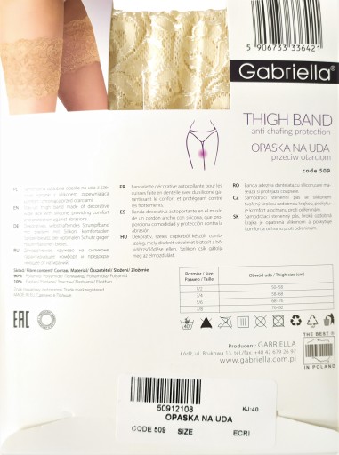 - Opaska pozostaje na tym samym miejscu i zdobi efektownie nogę, jednocześnie zapobiegając otarciom i odparzeniom w newralgicznym punkcie uda.