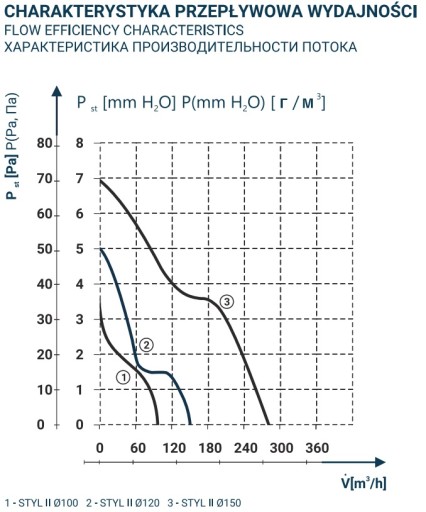Specyfikacja pracy wentylatora Dospel Styl II 150 WCH 007-1136