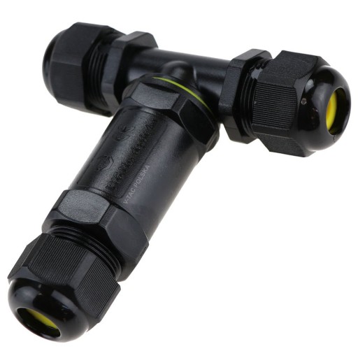 Hermetyczna mufa kablowaVT-869 marki V-TAC® ułatwia montaż zewnętrznych lamp LED oraz szczelne łączenie trzech przewodów ziemnych. Skręcane elementy z uszczelkami zaciskają się na kablu - klasa szczelności IP68. Średnica przewodu od 8 do 12 mm, max przekrój żył 3x 2,5 mm. Obudowa koloru czarnego wykonana z polipropylenu