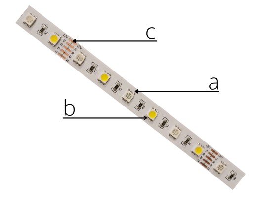 Taśma RGB + neutralny oznacza, że jeden rodzaj diody odpowiada za kolory CZERWONY / ZIELONY / NIEBIESKI (a)oraz ich mieszanki a drugi za światło BIAŁE NEUTRALNE (b).