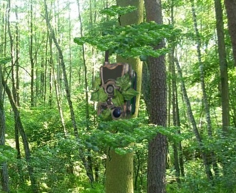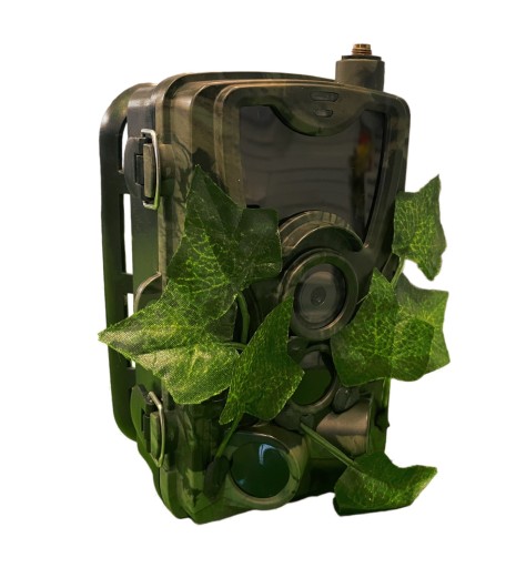 Dzięki liściom, które są na obudowie fotopułapki kamerka doskonale wtapia się w otoczenie. Przy montażu fotopułapki należy zwrócić uwagę aby liście nie zasłaniały obiektywu i czujników ruchu. Do obudowy kamerki można także przyczepić liście naturalne. Należy jednak pamiętać, że z powodu braku wody owe liście wyschną i opadną.
