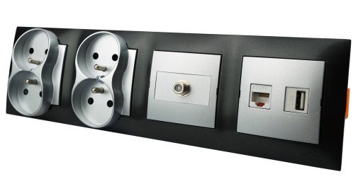 - Ilość wejść: 1 gniazdo internetowe RJ-45 cat.6, 1 gniazdo USB 3.0, 2 gniazda zasilające 230V podwójne, 1 gniazdo F telewizyjne