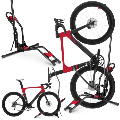 - dwie możliwości ustawienia roweru zarówno w pozycji pionowej jak i poziomej gwarantują komfort i bezpieczeństwo prac serwisowych.