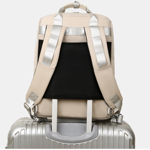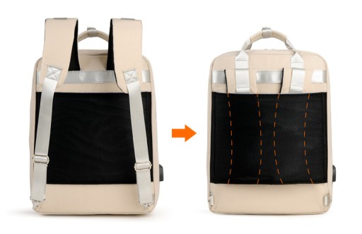 Plecak JQ 1005 został wykonany z wytrzymałego i wodoodpornego materiału. Wewnątrz pojemnej komory znajduje się miękka kieszeń na laptop do 15,6" zapinana taśmą na rzep i wyściełana specjalnym materiałem z wypustkami, zapewniającymi amortyzację i bezpieczeństwo przenoszonego sprzętu. Znajdują się tu również dwie siateczkowe kieszenie, z których jedna zapinana jest na zamek, a także łącze do power banka z zewnętrznym gniazdem USB, znajdującym się z boku plecaka. Z przodu plecaka znajduje się duża kieszeń zapinana na poziomo na zamek, w której znajduje się funkcjonalny organizer na drobiazgi czy długopisy, oraz malutka kieszonka zapinana pionowo. Profilowane szelki są wyłożone sprężystymi gąbkami zwiększającymi komfort w trakcie noszenia. Dzięki specjalnym karabińczykom można je szybko schować pod znajdującym się na plecach szerokim pasem, który umożliwia również założenie plecaka na rączkę torby podróżnej. Nad szelkami znajduje się podwójny uchwyt służący do przenoszenia plecaka w ręce.