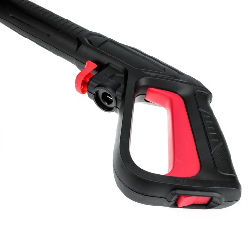 Został skonstruowany tak, by dobrze leżał w dłoni i praca z nim przebiegała w komfortowych warunkach. Pistolet posiada blokadę spustu wody. Dysza przestawna umożliwia regulację szerokości strumienia.