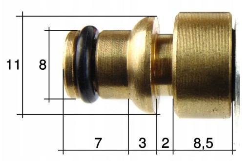Na zdjęciu znajdują się dokładne wymiary redukcji do myjek Black&Decker oraz Bosch nowego typu.