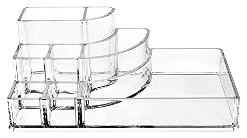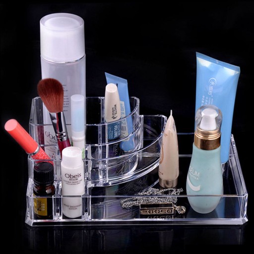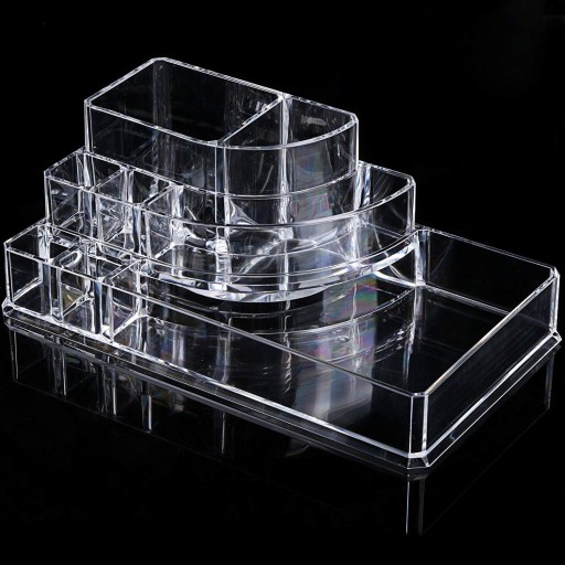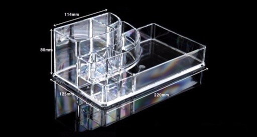 Praktyczny, wykonany z grubszego, elegancko połyskującego akrylu organizer na różnej wielkości kosmetyki, akcesoria i pędzle do makijażu. Pozwala w sposób łatwy i praktyczny uporządkować swoją toaletkę. Łącznie posiada 8 przegródek.