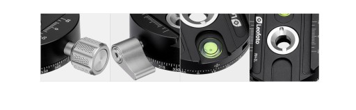 Głowica pracuje niezależnie w czterech kierunkach w oparciu o poziomice oraz skale pokazujące kąt pochylenia i obrotu. Pozycja aparatu jest regulowana poprzez 3 duże i poręczne pokrętła sterujące które umożliwiają zmianę płaszczyzny w małych skokach. Innowacyjnym rozwiązaniem jest funkcja złożenia głowicy do niewielkich rozmiarów tak przydatnych podczas transportu w plecaku lub torbie fotograficznej.