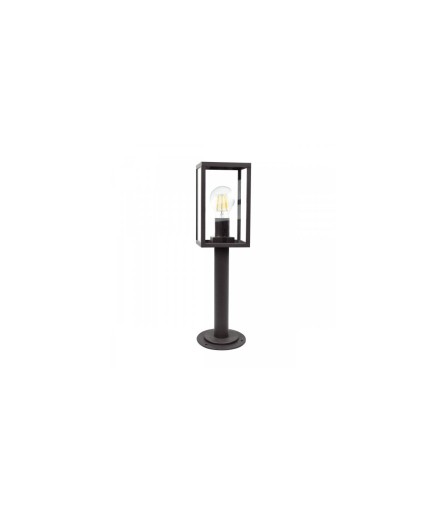 Prostokątna oprawa ma postać industrialnej klatki z metalu umieszczonej na prostej podstawie. Przez przeszklone ściany wydobywa się światło widocznej w środku żarówki. Maszt ten idealnie spisze się w roli oświetlenia altany, tarasu, ścieżek i dekoracyjnych klombów w ogrodzie, nadając otoczeniu przyjemnego klimatu.