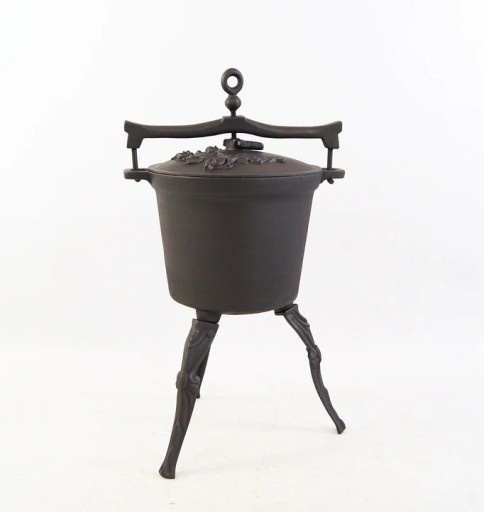 Kociołek zwany również bogracz, w Europie pojawił się ponad 1000 lat temu. Największą popularność zdobył na Węgrzech, ale także dobrze znany jest jako kociołek myśliwski. Myśliwi cenili go głównie za możliwość zrobienia dania jednogarnkowego w każdych warunkach. Dziś kociołki wracają, za sprawą programów kulinarnych, doskonale sprawdzą się również jako ozdoba do ogrodu. PRODUKT KOLEKCJONERSKI. Kociołek jest nowy, nieużywany, oryginalnie zapakowany