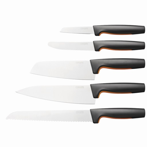 Zestaw 5 noży w bambusowym bloku Fiskars Functional Form + ostrzałka