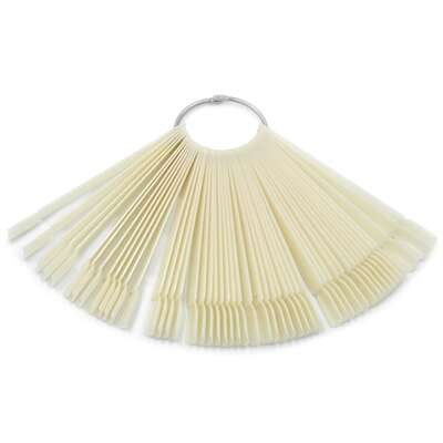 Każdy ze wzorników składa się z 50 pojedynczych tipsów w kształcie i rozmiarze prawdziwych paznokci! Są one spięte praktycznym, rozpinanym kołem.Każdy z tipsów wykonany jest z trwałego tworzywa sztucznego!