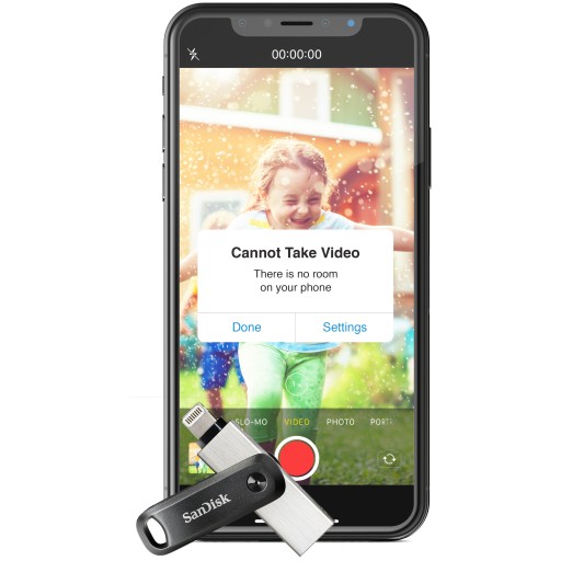 Filmy zajmują zbyt dużo miejsca? iXpand Flash Drive Go umożliwia nagrywanie bezpośrednio na dysku, dzięki czemu duże pliki nie zajmują cennego miejsca w pamięci iPhone’a.