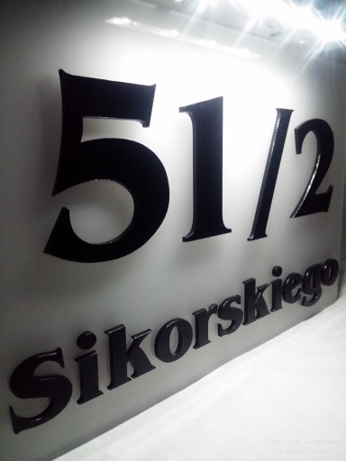 Tabliczka została wykonana z wysokiej jakości szkła akrylowego o łącznej grubości 6mm (3mm podkład + 3mm litery i cyfry).