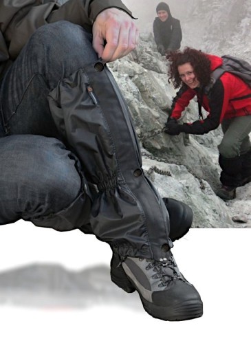 Dół i środek ochraniacza jest obszyty od wewnątrz gumą , która dopasowuje się do grubości buta i nogi. Góra ochraniacza posiada sznurek z klipsem regulującym jego długość, dzięki czemu można szczelnie docisnąć materiał na nodze.
