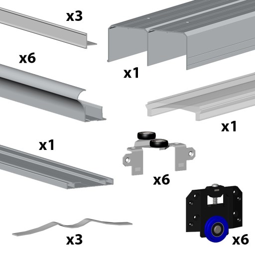 System przesuwny SLID’UP 280 do szafy 3 drzwiowej, kolor srebrny, tor 3 m, do wypełnień z płyty 18 mm lub lustra/szkła 4-6 mm