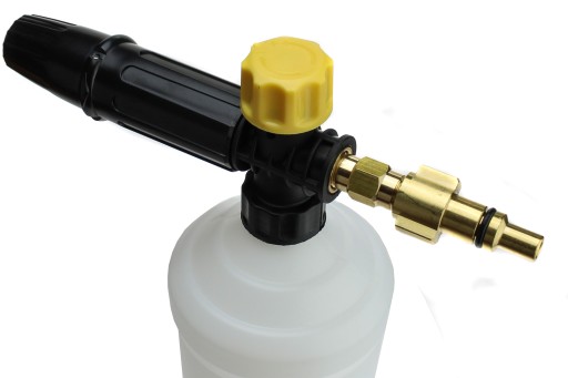 Przyłącze bagnetowe umożliwia montaż do pistoletu w myjkach ciśnieniowych serii domowej. Doskonale współpracuje ze wszelkiego rodzaju środkami czyszczącymi. Chemia omija obieg wewnątrz myjki i tym samym niweluje zagrożenie uszkodzenia urządzenia, a wszystko to dzięki montażowi pianownicy tuż przy wylocie wody.