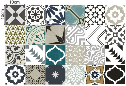 Przedmiotem aukcji jest zestaw 25 naklejek w rozmiarze 10x10cm idealnych do szybkiej i taniej zmiany wyglądu wnętrza. Świetnie nadają się do maskowania starych wzorów lub po prostu do zmiany koloru płytek kuchennych łazienkowych podłogowych lub schodów nadając wnętrzu zupełnie inny charakter.