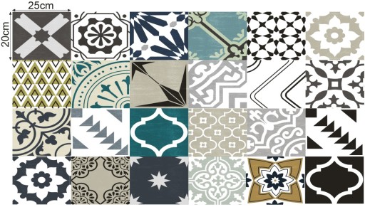 Przedmiotem aukcji jest zestaw 25 naklejek w rozmiarze 25x20cm idealnych do szybkiej i taniej zmiany wyglądu wnętrza. Świetnie nadają się do maskowania starych wzorów lub po prostu do zmiany koloru płytek kuchennych łazienkowych podłogowych lub schodów nadając wnętrzu zupełnie inny charakter.