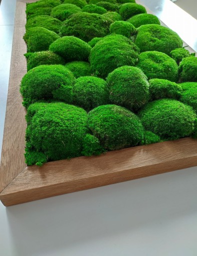Mamy dla was ręcznie przygotowane, dębową ramę, w których zamknęliśmy obraz z mchu poduszkowego.
