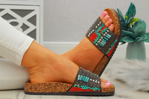 HIT KLAPKI DAMSKIE Z KAMIENIAMI NA KORKU 36-41