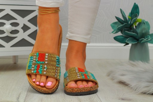HIT KLAPKI DAMSKIE Z KAMIENIAMI NA KORKU 36-41