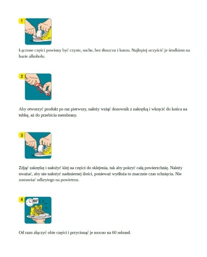 Nie należy czekać, po nałożeniu produktu od razu połączyć klejone powierzchnie.