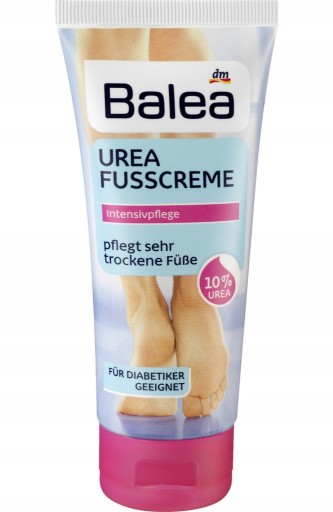 Balea krem do stóp z wysoką zawartością 10% mocznika, do stosowania przy bardzo suchej skórze stóp. Wysoka zawartość mocznika, pantenol i gliceryna działają bardzo szybko i bardzo skutecznie na dolegliwości suchych i zmęczonych stóp. Zawiera również witaminę B3, wspomagającą naturalne funkcje ochronne skóry. Kremowa, szybko-wchłaniająca się formuła.