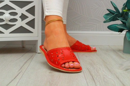 Zewnętrzna warstwa wykonana jest z eko skóry w kolorze czerwonym w ażurowy kwiatowy wzór.