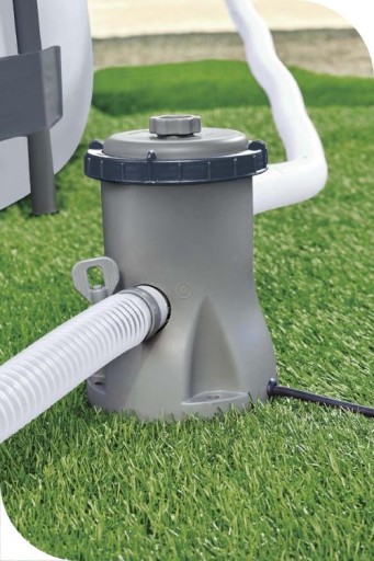 Elektryczna pompa filtrująca toń wody z wszelakich zanieczyszczeń o wydajności 1 249 l/h. W zestawie dołączone są węże oraz złączki niezbędne do podłączenia pompy. W zestawie znajduje się jeden filtr kartuszowy typu I, o indeksie 58093. Filtry należy co 2-3 dni płukać pod bieżącą wodą, oraz wymieniać co 2 tygodnie.