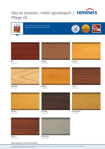 Olej pielęgnacyjny do drewnianych tarasów i mebli ogrodowych, z dodatkiem rozpuszczalnika.
