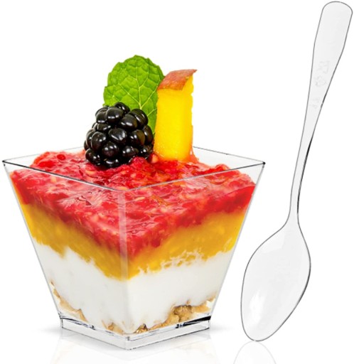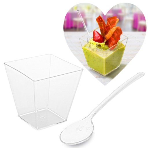 ДЕСЕРТНЫЕ КОНТЕЙНЕРЫ ЧАШКА ПИРАМИДА ДЛЯ ЗАКУСОК + ЛОЖКИ 50 ШТ.