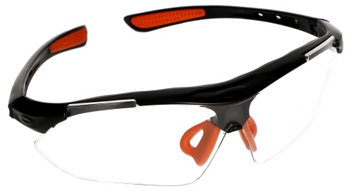 - Okulary robocze wykonano z wytrzymałych, polikarbonowych szkieł.