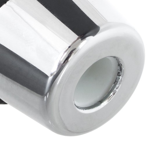 Kolor: czarna ekoskóra perforowana + chromowy element w dolnej części gałki