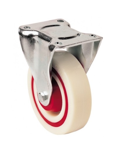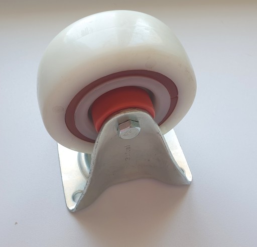 Powierzchnia toczna i piasta z białego wzbogaconego poliamidu. Pierścień amortyzujący z kauczuku Resilex w kolorze czerwonym. Piasta z łożyskiem wałeczkowym, osłony piasty plastikowe w kolorze czerwonym.