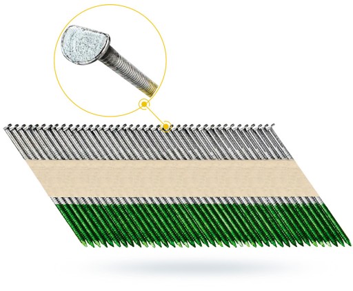 Gwoździe przeznaczone do gwoździarki osadzaka z zasilaniem, akumulatorowym, gazowym bądź pneumatycznym z magazynkiem ukośnym 34°. Kompatybilne z: Hikoki/Hitachi, Bea, Bostitch, Fasco, Paslode, Prebena, Senco, Dewalt, Stanley, Makita, Ryobi, Metabo, AEG, Milwaukee oraz innymi gwoździarkami z magazynkiem pod kątem 34°.
