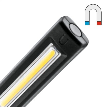 - Magnes na końcu lampy umożliwia chwycenie metalowego przedmiotu, który znalazł się w trudno dostępnym miejscu