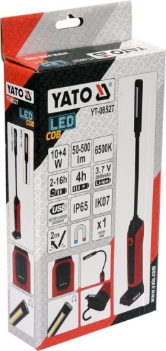 Lampa warsztatowa YATO dzięki elastycznemu, cienkiemu ramieniu oraz dwustronnej diodzie COB umożliwia oświetlenie trudno dostępnych miejsc.