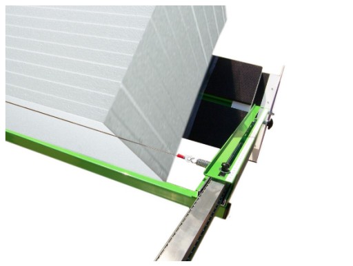 - Częścią tnącą stanowi rozgrzany drut oporowy zamontowany na konstrukcji aluminiowej spawanej zaletą tego elementu jest możliwość oddzielenia go od urządzenia i ciecia nietypowych elementów poza urządzeniem bądź prostowania ścian ( słupów ) styropianowych .