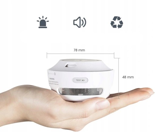 - Głośność alarmu: ≥ 85 dB (3m)